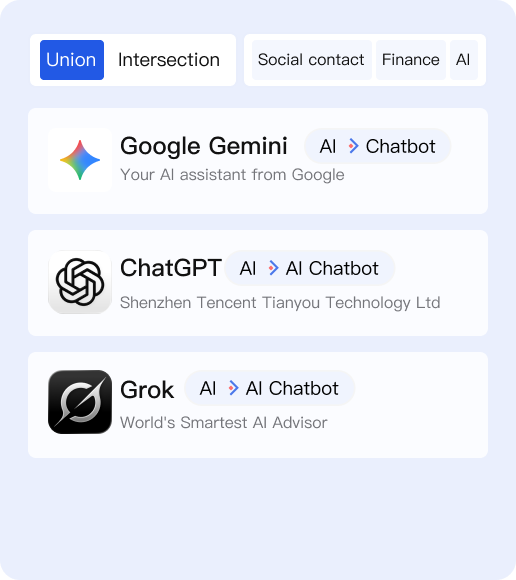 Based on the core features of apps, intelligently cluster mainstream apps